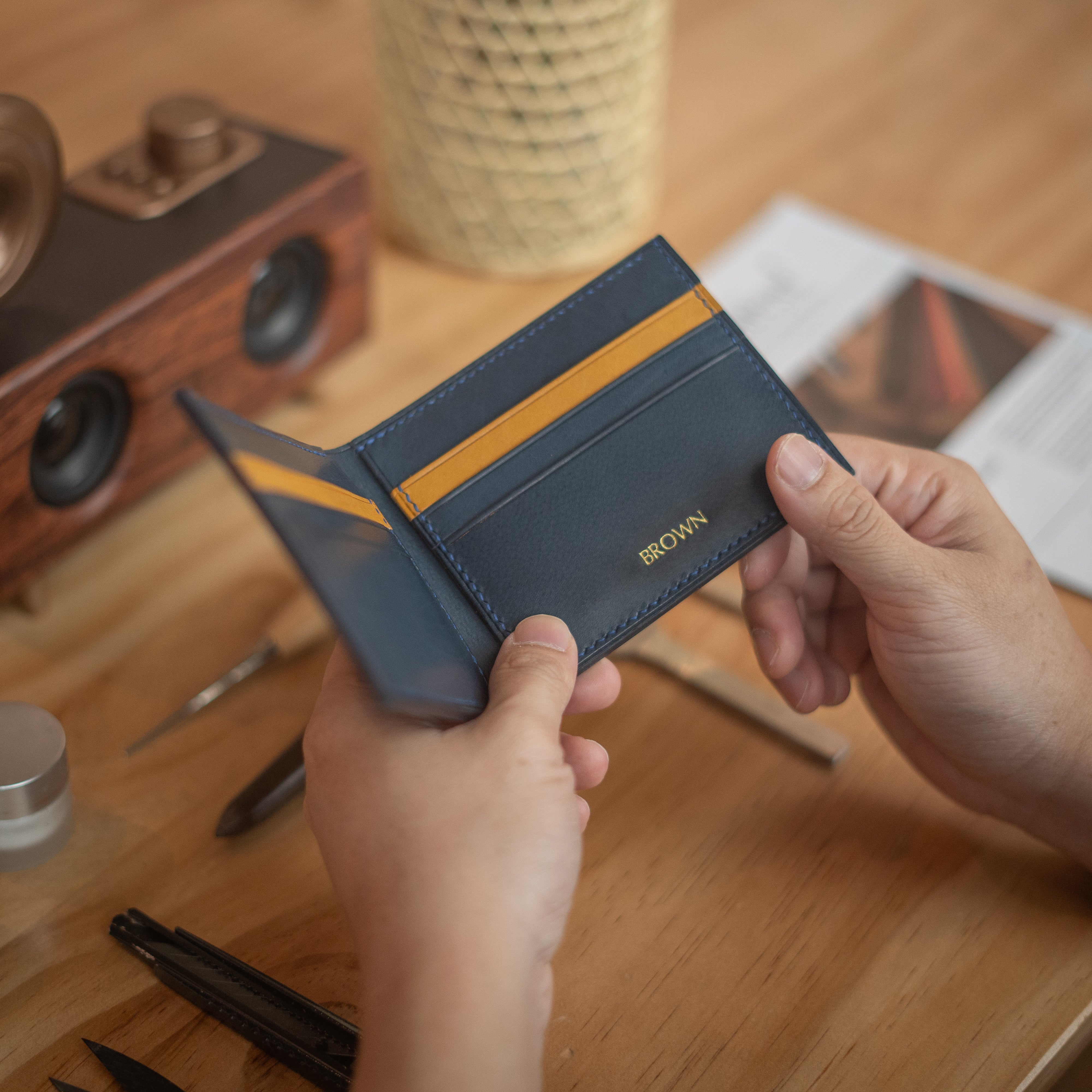 Staying organized and stylish with a small and slim wallet.